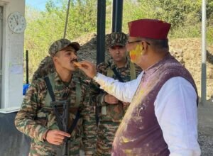 सैनिक कल्याण मंत्री गणेश जोशी ने होली के पावन अवसर पर भारत माँ की सेवा में तैनात अपने सैनिक भाइयों को तिलक लगाया तथा मिठाई खिलाकर उन्हें होली की शुभकामनाएं दीं, मंत्री गणेश जोशी ने कहा